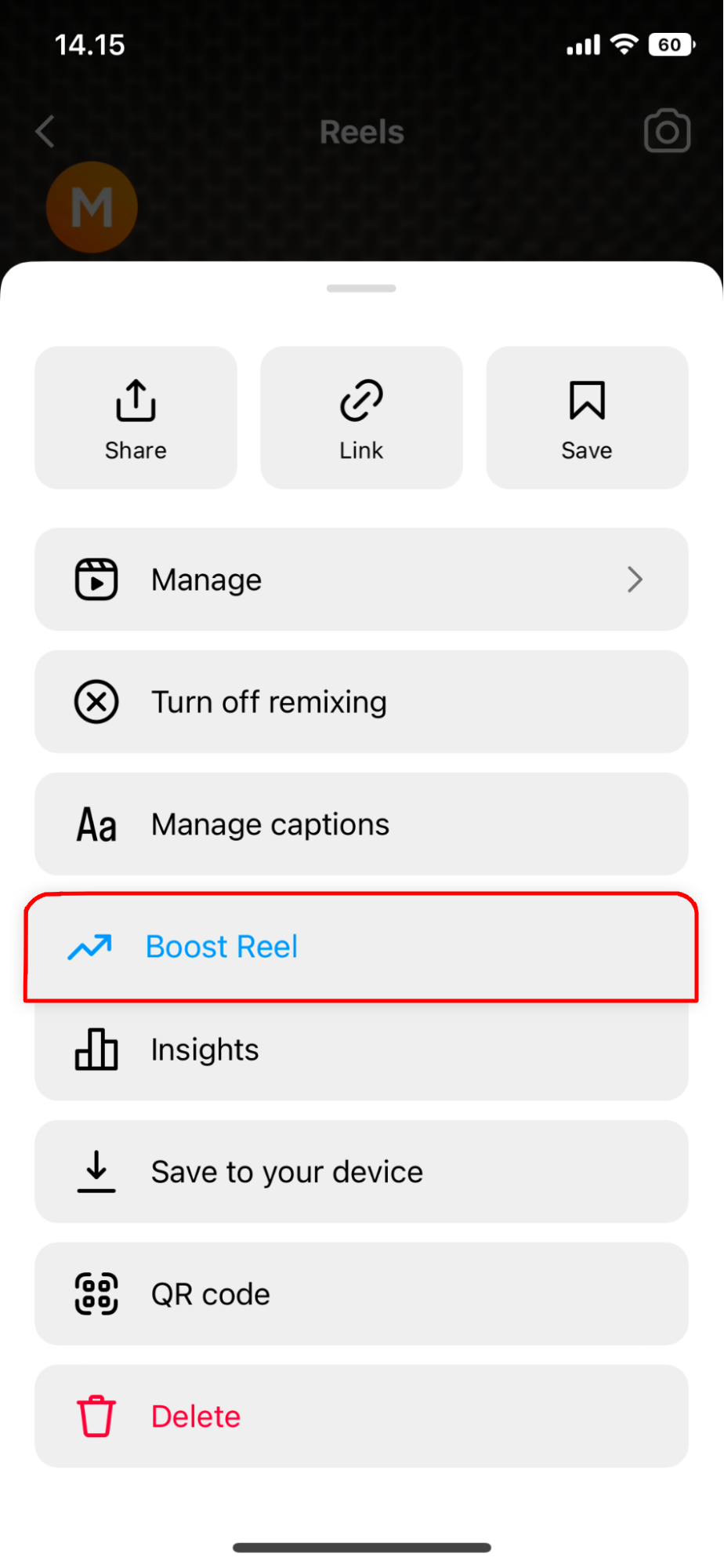 2. Klik Boost Reels.