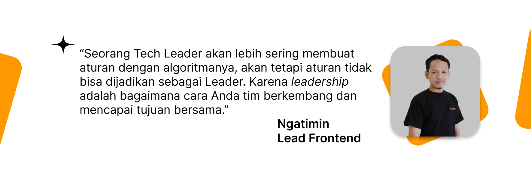 Aturan dibuat sebagai petunjuk atau arahan. Kualitas kepemimpinan seorang Frontend diuji dari kemampuannya membawa timnya untuk selalu bisa berkembang dan berinovasi dan tetap berorientasi pada experience user.