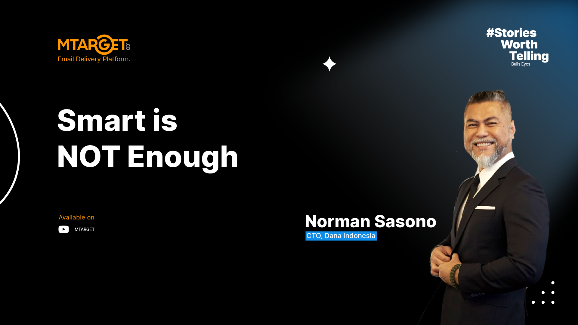 Bulls Eyes: Smart is NOT Enough - Norman Sasono, CTO DANA Indonesia Bulls Eyes | 27 Okt 2022 How to be single out from the crowd, how you can win in the competition, how you can really sign and be the best? Maximize your potential here.