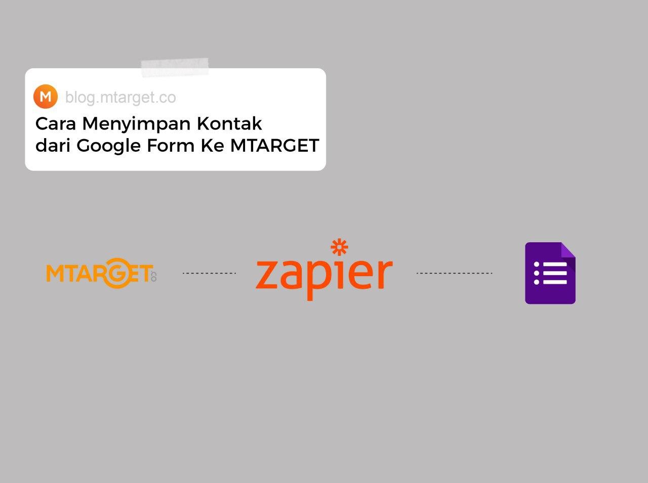 Cara Menyimpan Kontak dari Google Form ke MTARGET Other | 13 Agt 2020 Ingin menyimpan kontak dari Google Form ke contact management MTARGET? Melalui Zapier Anda dapat melakukannya dengan mudah. Berikut ini caranya.