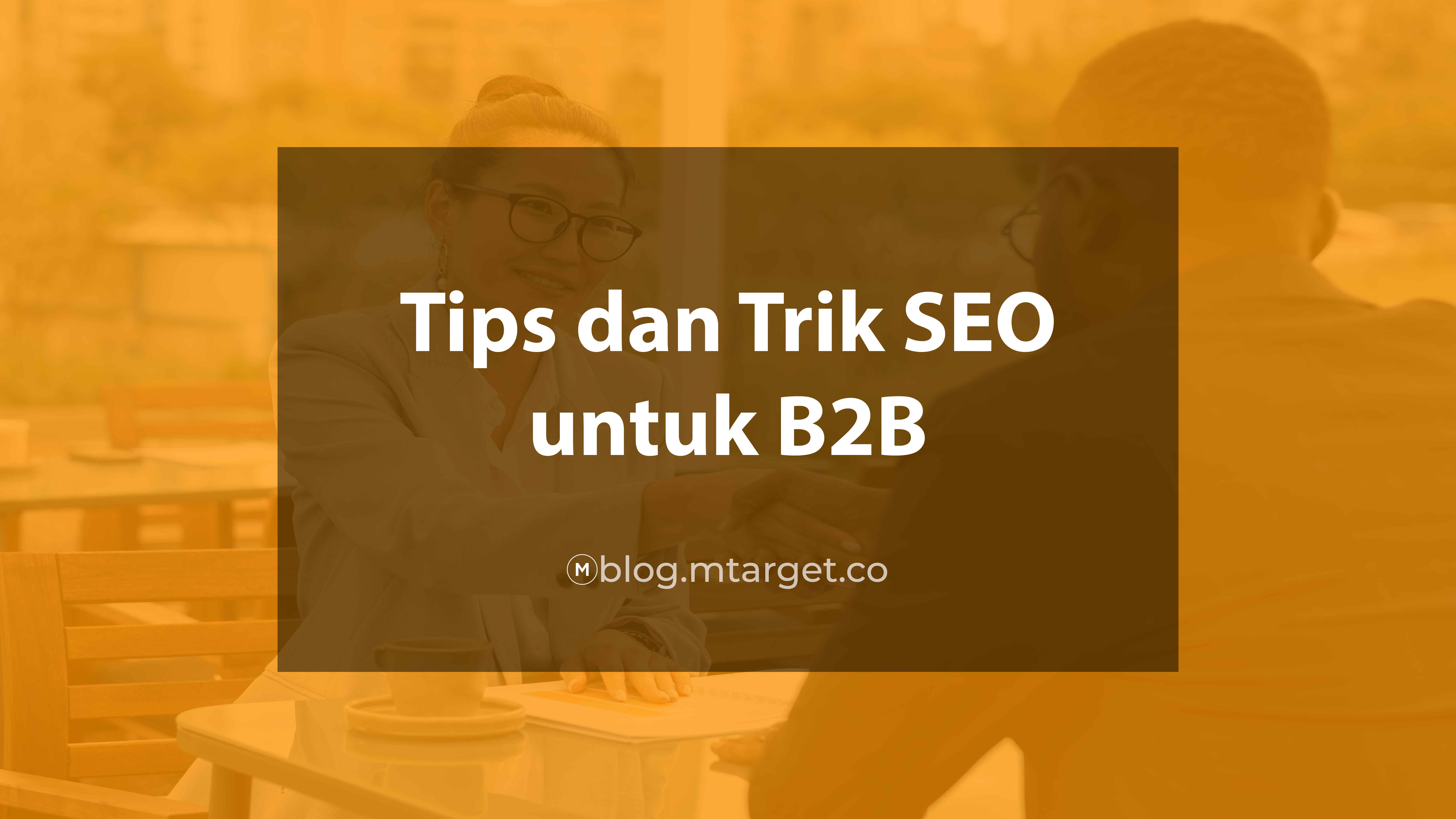 3 Tips dan Trik SEO untuk B2B yang Harus Dilakukan Tips | 7 Sep 2021 Search Engine Optimization atau SEO merupakan strategi yang wajib dijalankan oleh perusahaan, khususnya jika ingin menarik perhatian B2B.