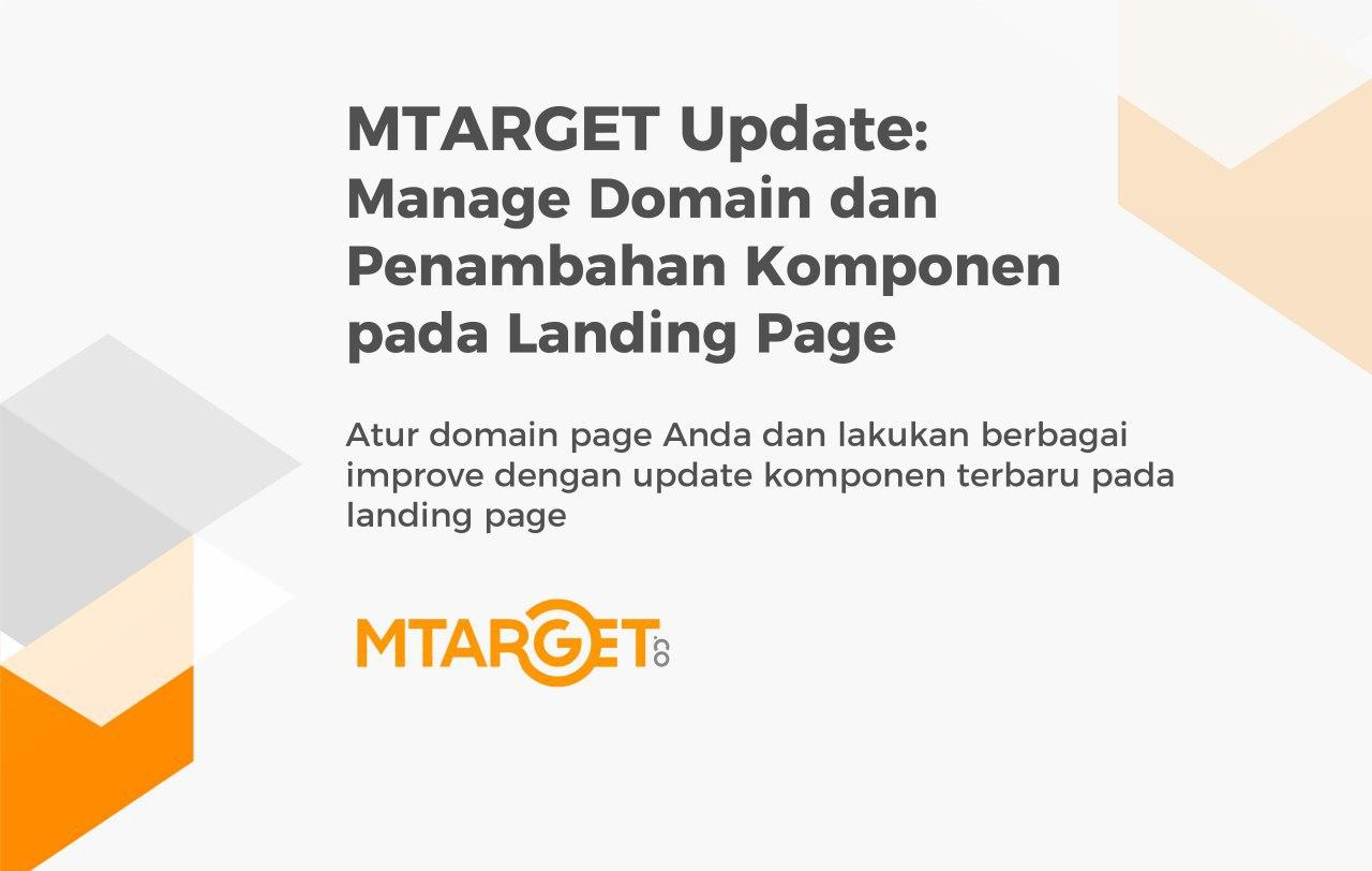 Optimalkan Landing Page Anda dengan Berbagai Komponen Terbaru dari MTARGET Updates | 29 Mei 2020 Coba berbagai fitur dan komponen terbaru pada landing page MTARGET. Fitur Manage Domain, Penambahan komponen Navigasi, Video, Podcast, Pop-Up, dan Penambahan Teks pada Chat WhatsApp.