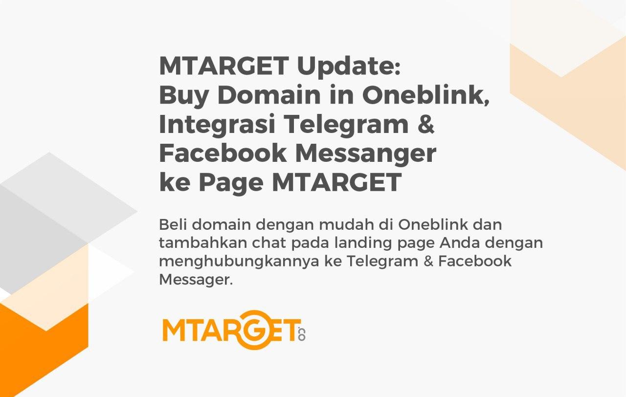 Update: Integrasi Telegram & Facebook Messanger ke Page MTARGET Updates | 3 Sep 2020 Tambahkan chat pada landing page Anda dengan menghubungkannya ke Telegram & Facebook Messager. Dan beli domain dengan mudah di Oneblink.