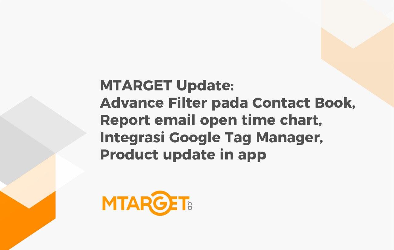 Update: pU Informasi pembaruan Fitur MTARGET Updates | 20 Okt 2020 Product Update di Apps, Report spesifikasi waktu di Email Marketing, Integration Google Tag Manager, Interface & Advanced Filter Contact Book. Coba sekarang di sini.