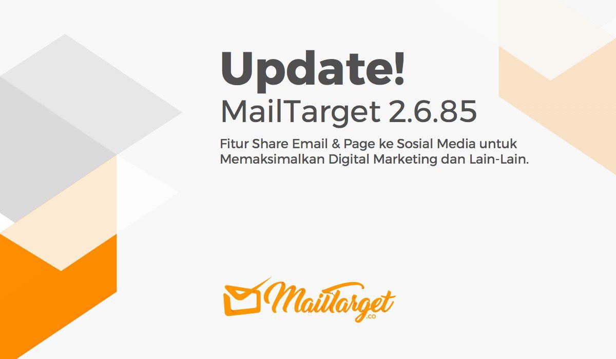 MailTarget 2.6.85, Fitur Share Email dan Page ke Sosial Media untuk Memaksimalkan Digital Marketing Anda Updates | 7 Feb 2018 MailTarget 2.6.85 hadir dengan beberapa product update yang akan semakin memudahkan dan mempercepat Anda untuk meningkatkan performance dalam bekerja. Berikut beberapa update yang telah kami rangkum.